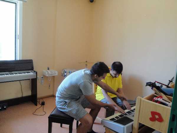 Στο οικοτροφείο μας υπάρχει ένας χώρος με μουσικά όργανα. Τα άτομα με αυτισμό ανταποκρίνονται ευχάριστα στη μουσική. Η μουσική και οι ήχοι που παράγουν τα μουσικά όργανα αποτελούν ερεθίσματα που ικανοποιούν την αίσθηση της ακοής, ενώ συνδέονται άμεσα με την ανάπτυξη της κιναισθησίας (δεξιότητα αίσθησης της μυϊκής συστολής και της κίνησης), το σύστημα αφής, τον προσανατολισμό, τη διαφοροποίηση ήχων και τη γνωριμία με τα μουσικά όργανα.