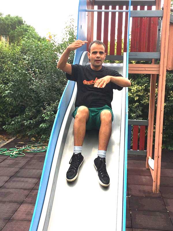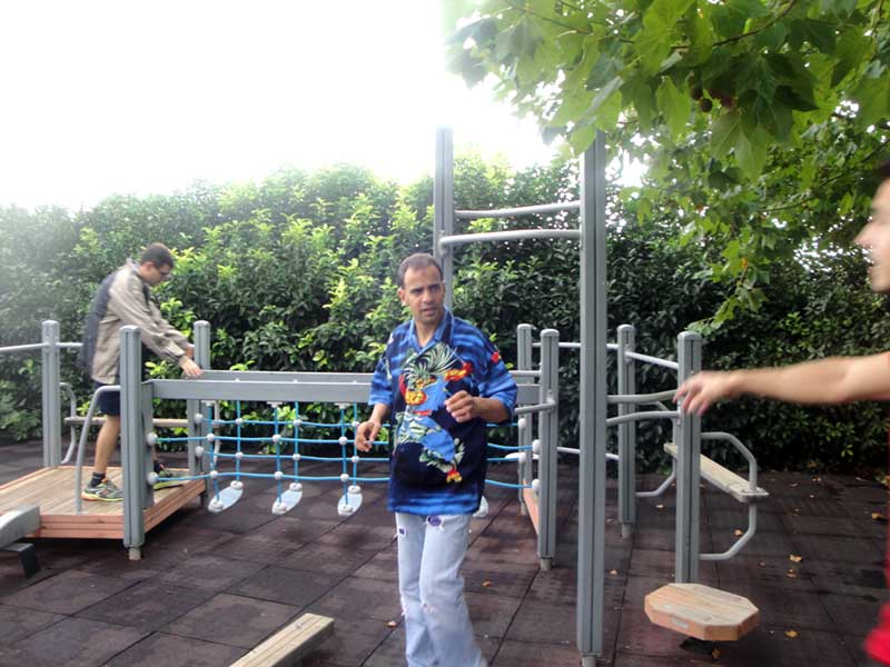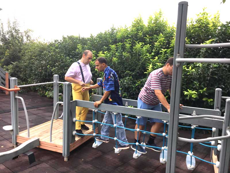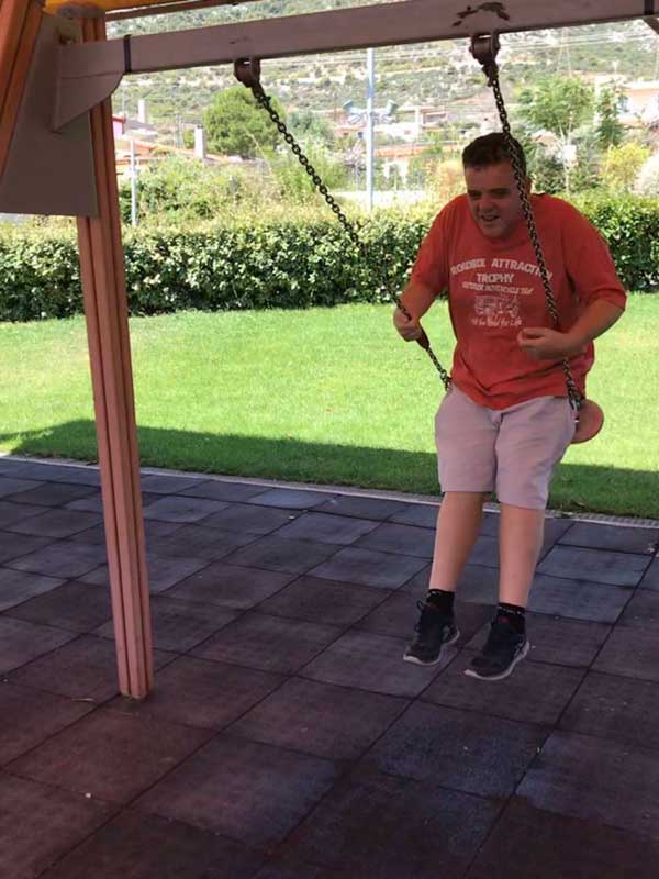 Τα άτομα με αυτισμό δυσκολεύονται στο ομαδικό παιχνίδι και δεν απολαμβάνουν τα θορυβώδη μέρη. Μέσα στο χώρο του οικοτροφείου έχει διαμορφωθεί ένας κατάλληλος χώρος άσκησης και ανάπτυξης των κοινωνικών δεξιοτήτων. Η παιδική μας χαρά παρέχει μέσω της κούνιας και της τσουλήθρας καθώς και της ειδικής κατασκευής μας (διαδρομή), εξάσκηση των δεξιοτήτων ισορροπίας, αιώρησης και αθουσαίου προσανατολισμού.